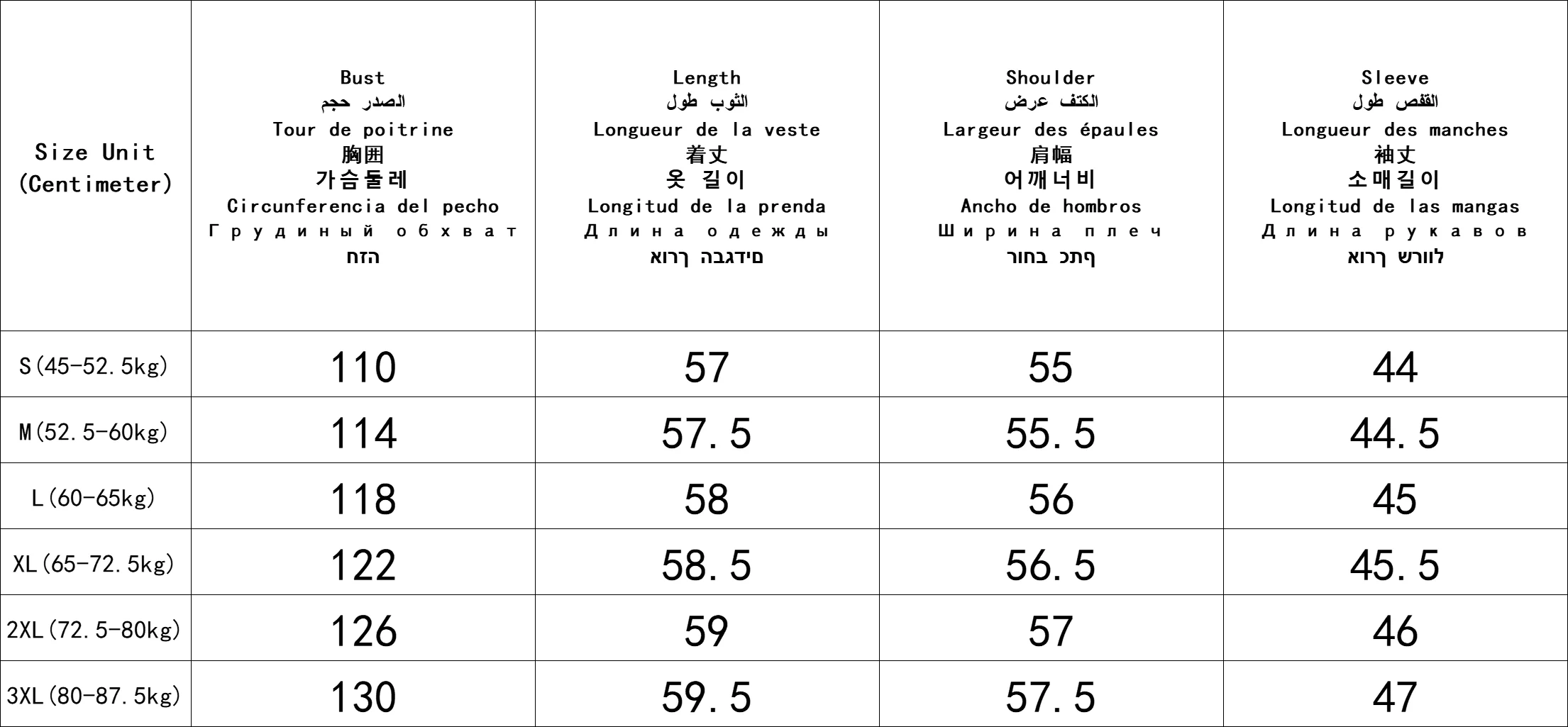 Sleeve Length(cm)
